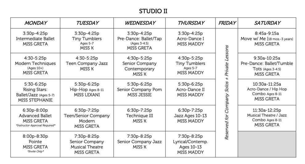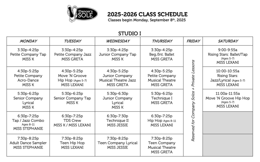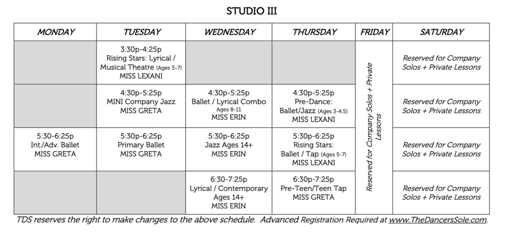TDS reserves the right to make changes to the schedule below if necessary. Registration Open NOW! We can't wait to dance into Season 13 with you!